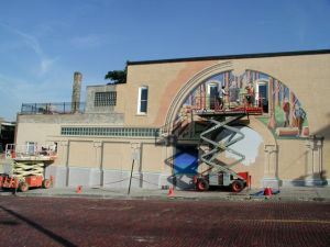 I worked with an artist team to paint a Richard Haas designed mural in Grand Rapids, MI. for the Heartside Neighborhood Redevelopment project. With Tim Luzak, Tim Gunnet , and Amy (? from NYC ), with Evergreene. The theme is the history of the Grand Rapids Furniture industry. Sponsored by the Dwelling Place organization.