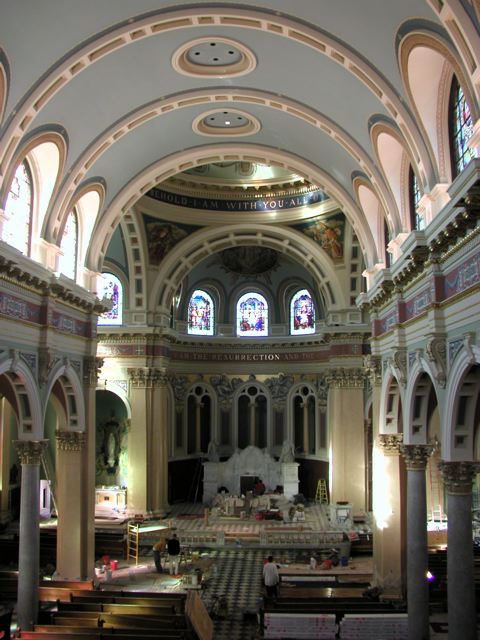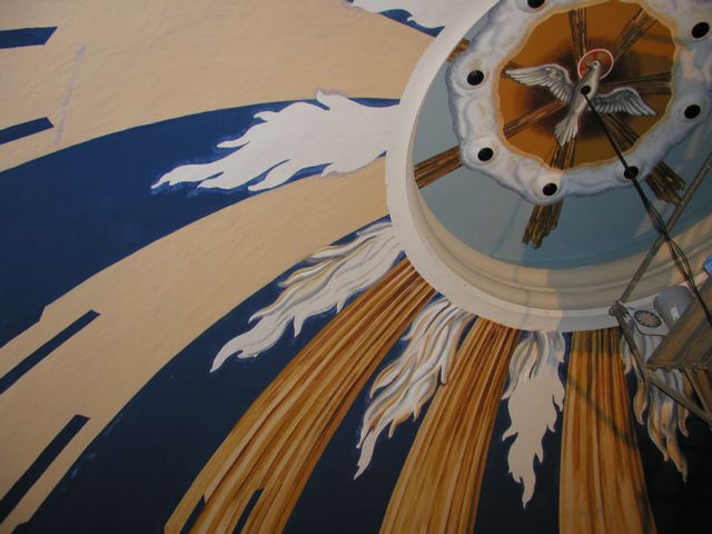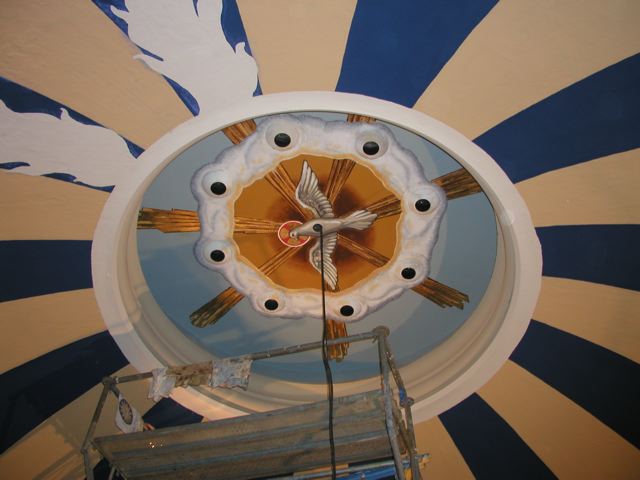 In October 2006, I painted a mural inside a cathedral dome at St. Patrick’s Cathedral in Harrisburg, PA. The project was a recreation of an original mural that had suffered water damage over the years. I was the lead artist for EverGreene Architectural Arts. Four other artists worked under my supervision.