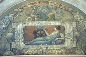 Here are some images of the murals. The more colorful version of Fortune was the 1960’s – which also obliterated a lot of the details. The second state of Fortune is a cleaned version before our in-painting. Labor and Postal are our finished product.