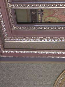 in the following gallery which includes several rooms, you can see the beginning stages (where the ceilings are white), intermediate stages, and the completed stages where the original murals look, well, original! Keep in mind everything you see had been completely painted over.