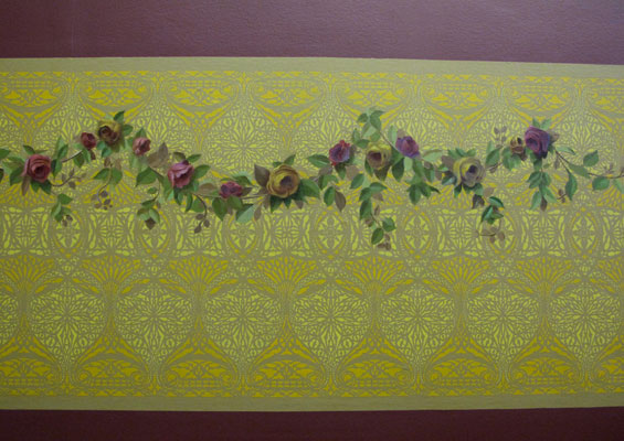 I recently worked on an installation from The Louis Sullivan Show at the Chicago Cultural Center. I painted some rose laurels very carefully over my friend Tony Kartsonas’ beautiful stenciling who also managed the job.