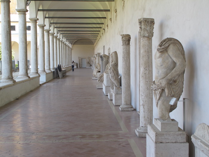 The Cloister was built in 1565 and is ascribed to Michelangelo. He actually probably just designed it and was not involved in the construction. The arcades are supported by 100 Travertine columns.