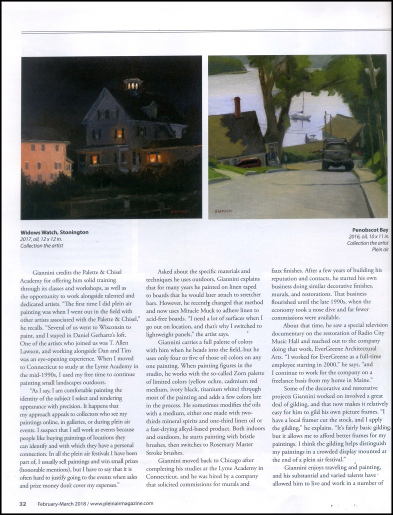 I am featured in the March 2018 issue of Plein Air magazine. Not only that, but they used one of my paintings on the cover. Of course I was very pleased about this!
