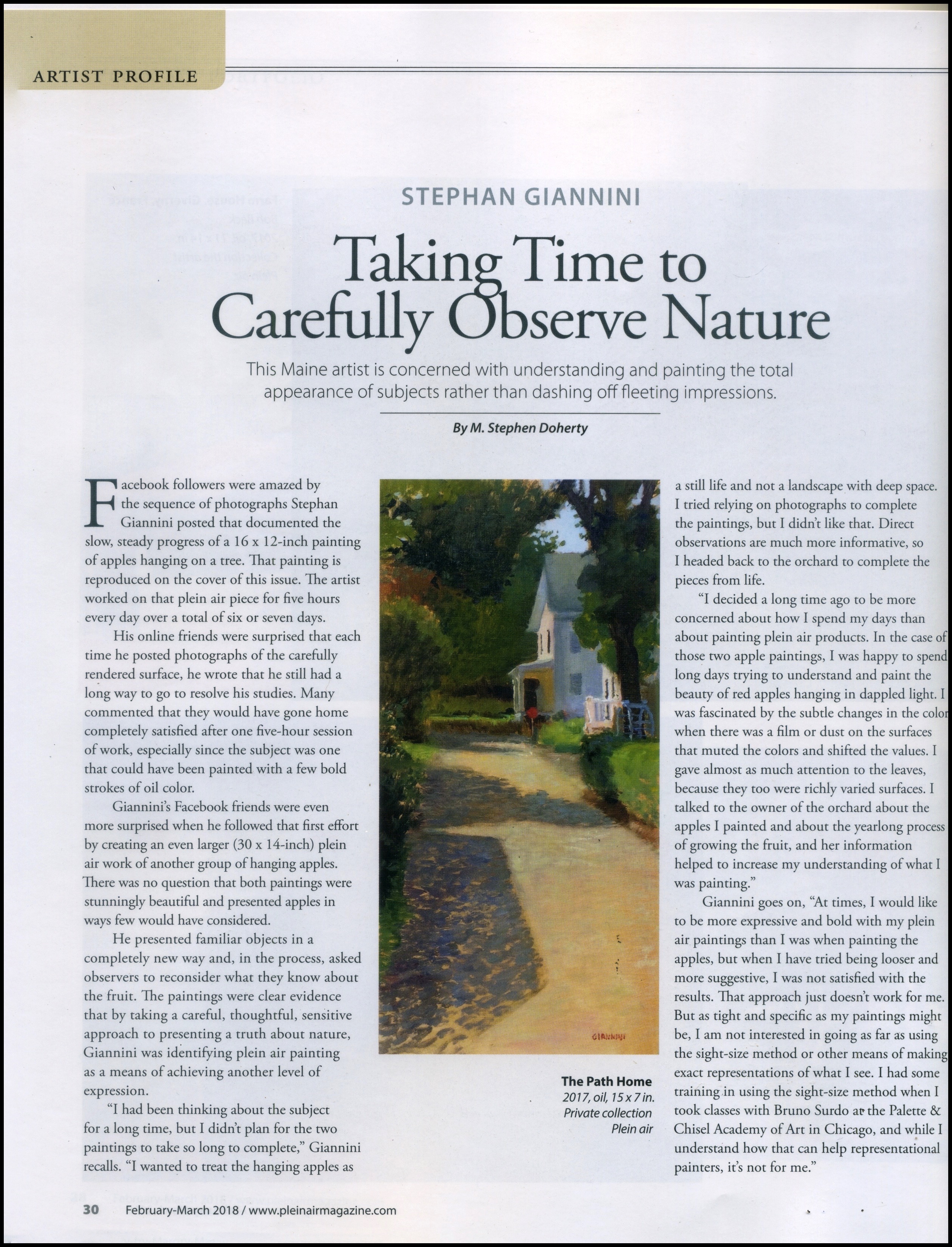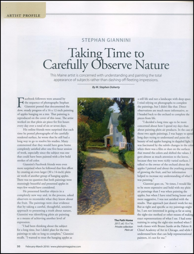 This article came about because the editor of the magazine at the time, Steven Doherty, had seen me posting a series of progression photos of some apple paintings that I was working on locally, here in the mid coast of Maine. They were aware of me because about five years ago I had submitted an article about a long painting trip I took to Italy, which was published in their digital edition. You can see that here.