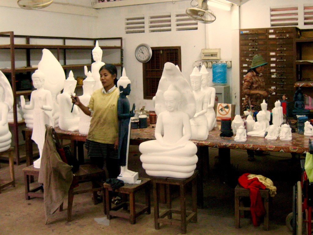 In Siem Reap town (the ‘base camp” for Angkor visitors) I visited “Artisans d’Angkor“, an organization that teaches and supports the traditional arts of the region. Their showroom and workshops were tremendously interesting.
