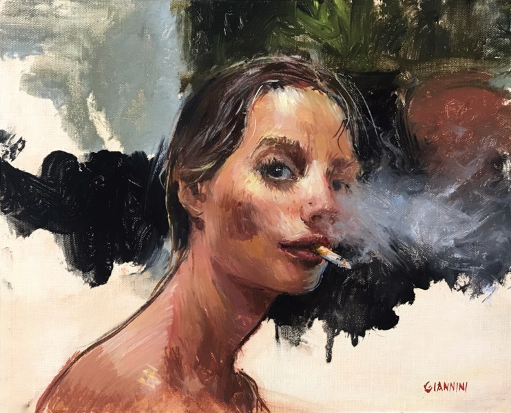 “Dragon Lady”, 8 × 10″ or 20 x 25 cm., oil on linen mounted on board. $200 Unframed.
