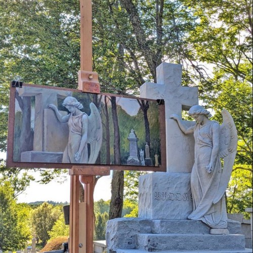 I love painting sculptures! I painted this during the pandemic at a cemetery in the town of Belfast, Maine. There are very few statues in the cemeteries near here, possibly because of traditional New England puritanism, or past poverty.