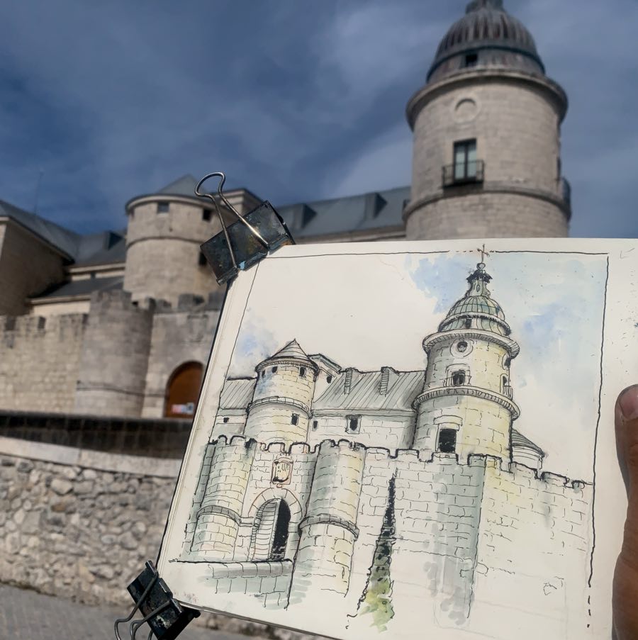While I was walking, I only did some sketching the last day of my trip in Simancas, Spain. The major point of interest there is the Archivo de Simancas. It holds documents from the Spanish royalty during the time of the Spanish empire.