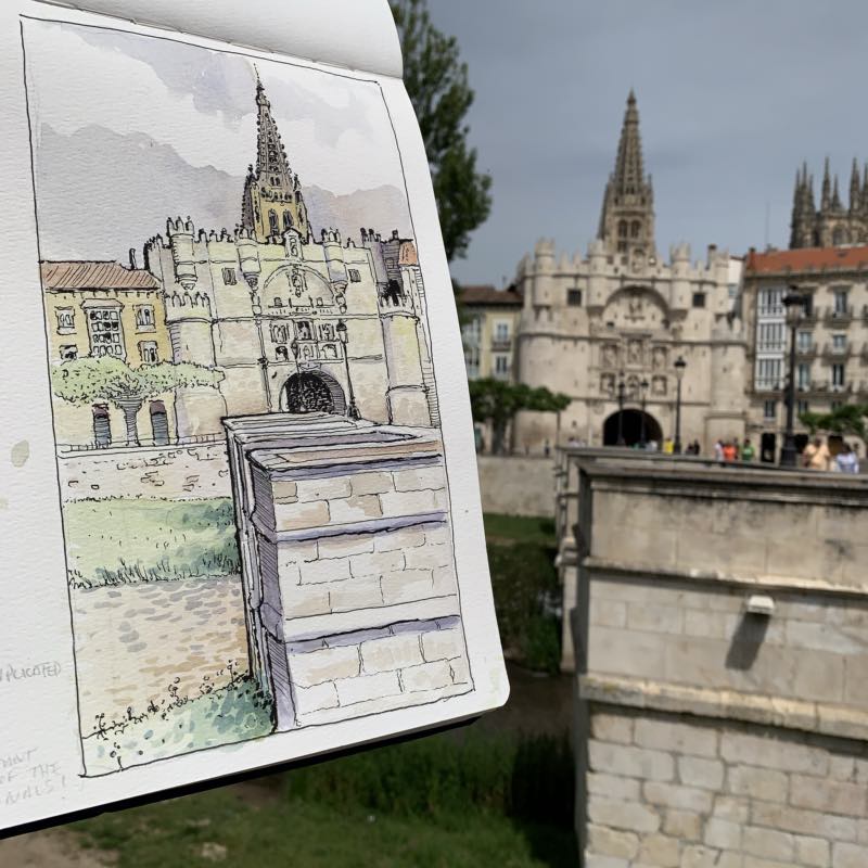 I did it again! After my first Camino Frances in 2022, which I ended up doing on a bicycle due to injury, I came back in 2024 and walked approximately 800 kilometers or 500 miles and completed it for the second time. And of course, I did some sketching…