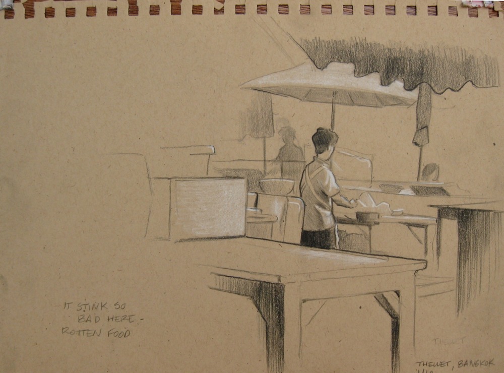 A drawing done at the Thewet Market in Bangkok. 9 x 12inA drawing done at the Thewet Market in Bangkok. 9 x 12in