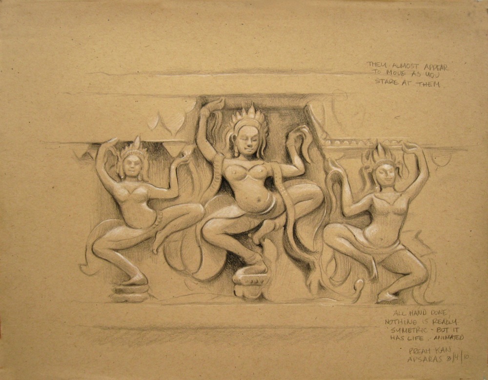 Dancing Apsaras at Angkor Thom(I believe), 11 x 14 in., colored pencil and chalk